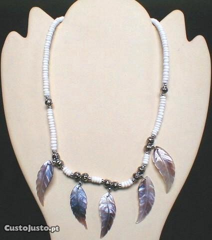 Colar concha, missangas, metal 21cm
