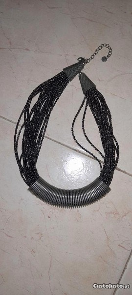 Colar preto, com efeito de vários colares (tem o fecho partido)