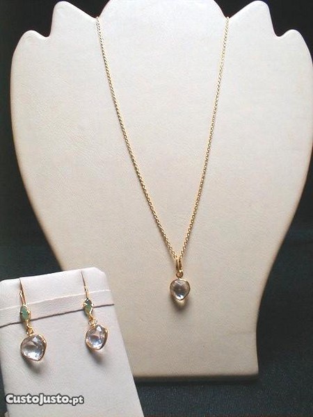 Preço: 7 €Conjunto fio brincos coração mineral(OG0258-3)29cm