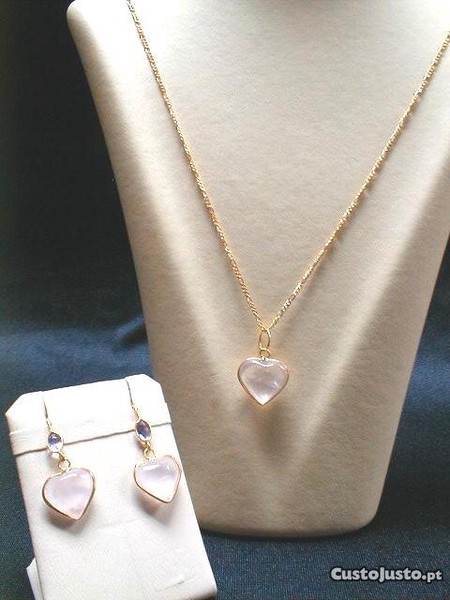 Conjunto fio brincos coração mineral(OG0258-4)29cm