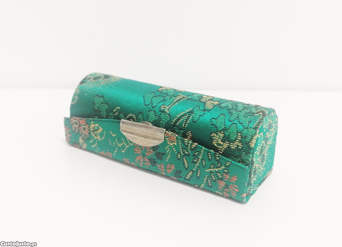 Porta-batom com espelho, em bom estado. Comprimento: 8,5 cms. Acrescem portes em caso de envio.