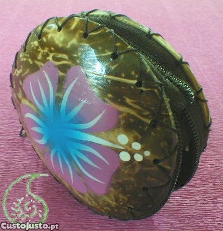 Preço: 4 €Porta-moedas de coco com flor 7x8x2cm