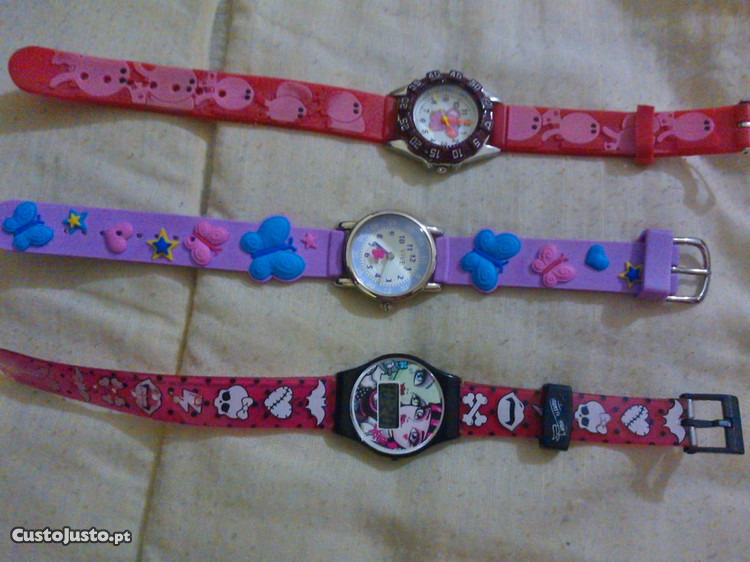 vendem-se 3 relogios de menina em estado novo, muito pouco uso e todos a funcionar entrego em mão em almada ou seixal envio por ctt 1 relógio digital da marca Monster Hight 1 relogio da marca VIVE 1 relogio da marca LCT cada um 4.00EUR Ofereço portes de envio CTT