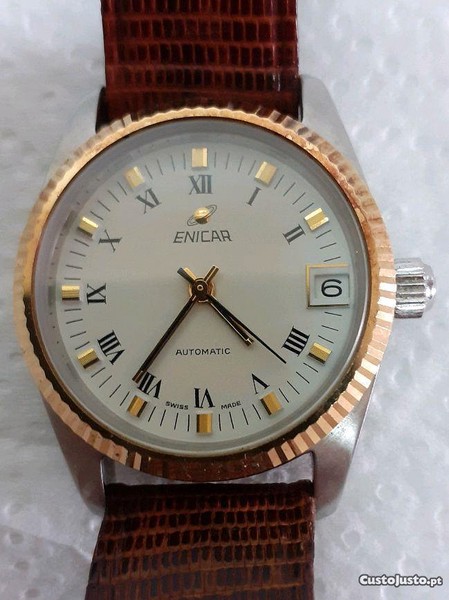 Relógio Enicar Automatico Novo Com Aro em Ouro Coroa De Rosca e Original em pleno funcionamento