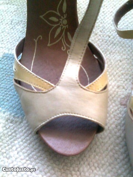 Sandálias compensadas, em pele verdadeira, muito elegantes e confortáveis.