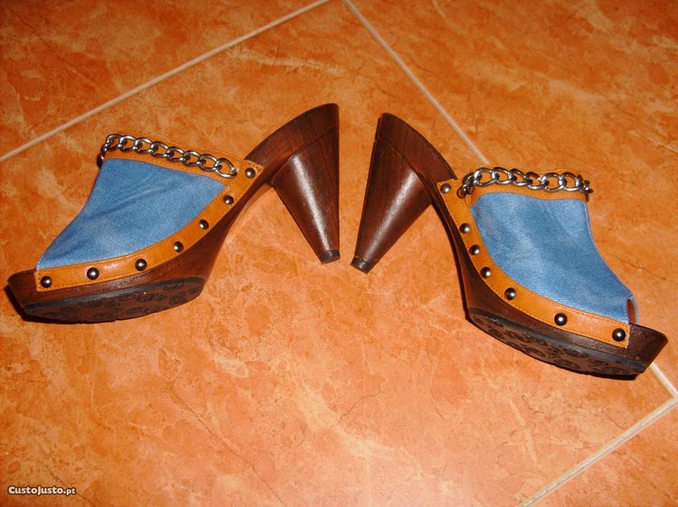 São em pele e ganga. Salto em madeira.