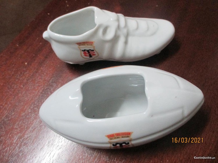 - 2 peças - porcelaine apilco - bota e bola de rugby - stade toulousian, section rugby