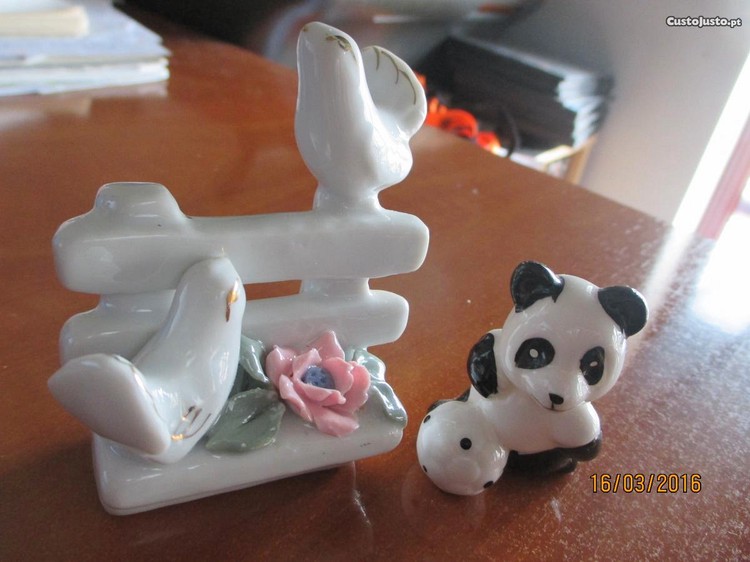 Preço: 10 €5 Estatuetas-2 Pierrot-1palhaço-1panda-1 banco c/2