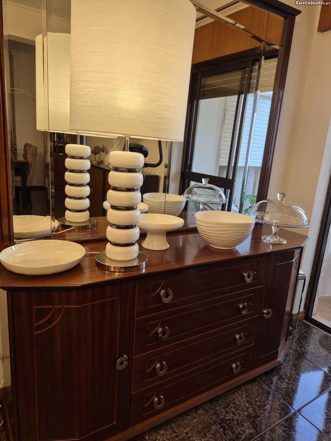 Aparador com mural em espelho - Mogno. Absolutamente como novo, sem riscos, marcas ou danos. Altura 200cm, largura 160cm, profundidade 40cm. Transporte a cargo do adquirente.
