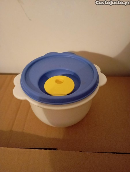 Preço: 6 €Caixa redonda 700ml tupperware, com tampa azul/branca