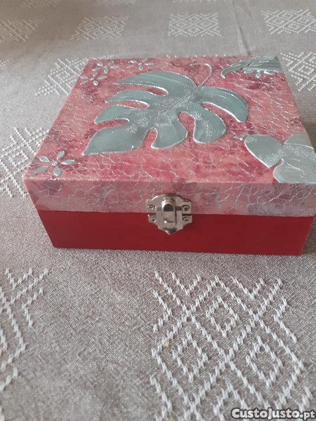 Caixinha multiusos, nova a estrear, decorada com folhas banhadas a estanho.