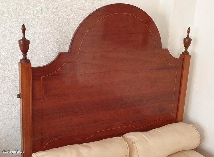 Cama de corpo e meio estilo D. Maria, completa com estrado e colchão de molas ortopédico com 1,83 x 1,05 M.