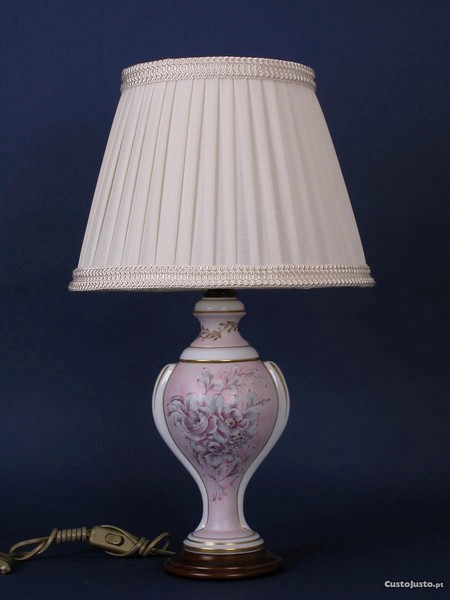 Preço: 150 €Candeeiro de mesa em porcelana pintada a mão rosa, com quebra-luz