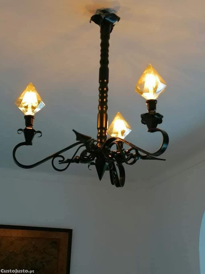 Candeeiro de teto vintage com 3 lâmpadas. Estrutura em metal preto com detalhes decorativos. Ideal para dar um toque de elegância e charme à sua sala de estar. (Vai sem as lâmpadas da foto)