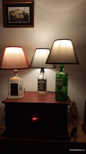 Vendo Candeeiros personalizados, de várias garrafas de whisky e/ou aguardente, funcionais em bom estado, a 40,00EUR cada.
