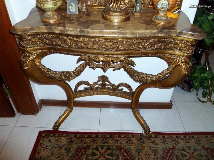 Cardência em talha dourada, tampo 0,90 m, altura 0,75 m. Tem espelho que se vende á parte caso haja interesse