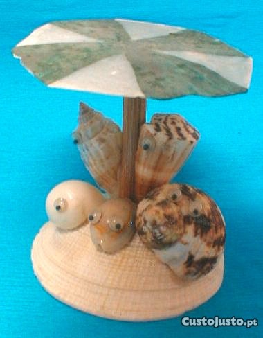 Chapéu de sol e bonecos de concha 8x7cm