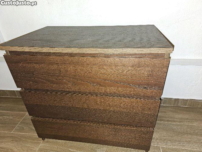 Móvel de quarto usado em madeira de carvalho. Possui 3 gavetas espaçosas para armazenamento. O móvel está em bom estado de conservação e pode ser uma ótima opção para complementar o seu quarto.