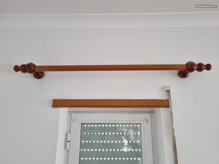Conjunto de varões para cortinado em madeira, c/ 1.00 m de comprimento, com acessórios para apoio e terminais