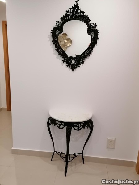 Preço: 65 €Credência com espelho lacado a preto, e pedra marmore branca