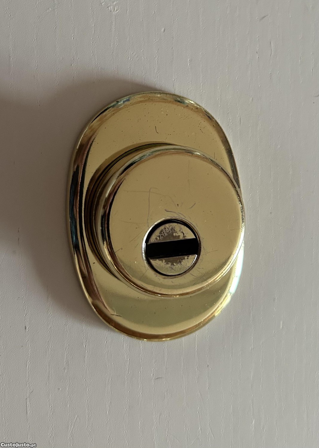 Espelho e proteção para fechadura, com alguns riscos conforme se vê nas fotos.