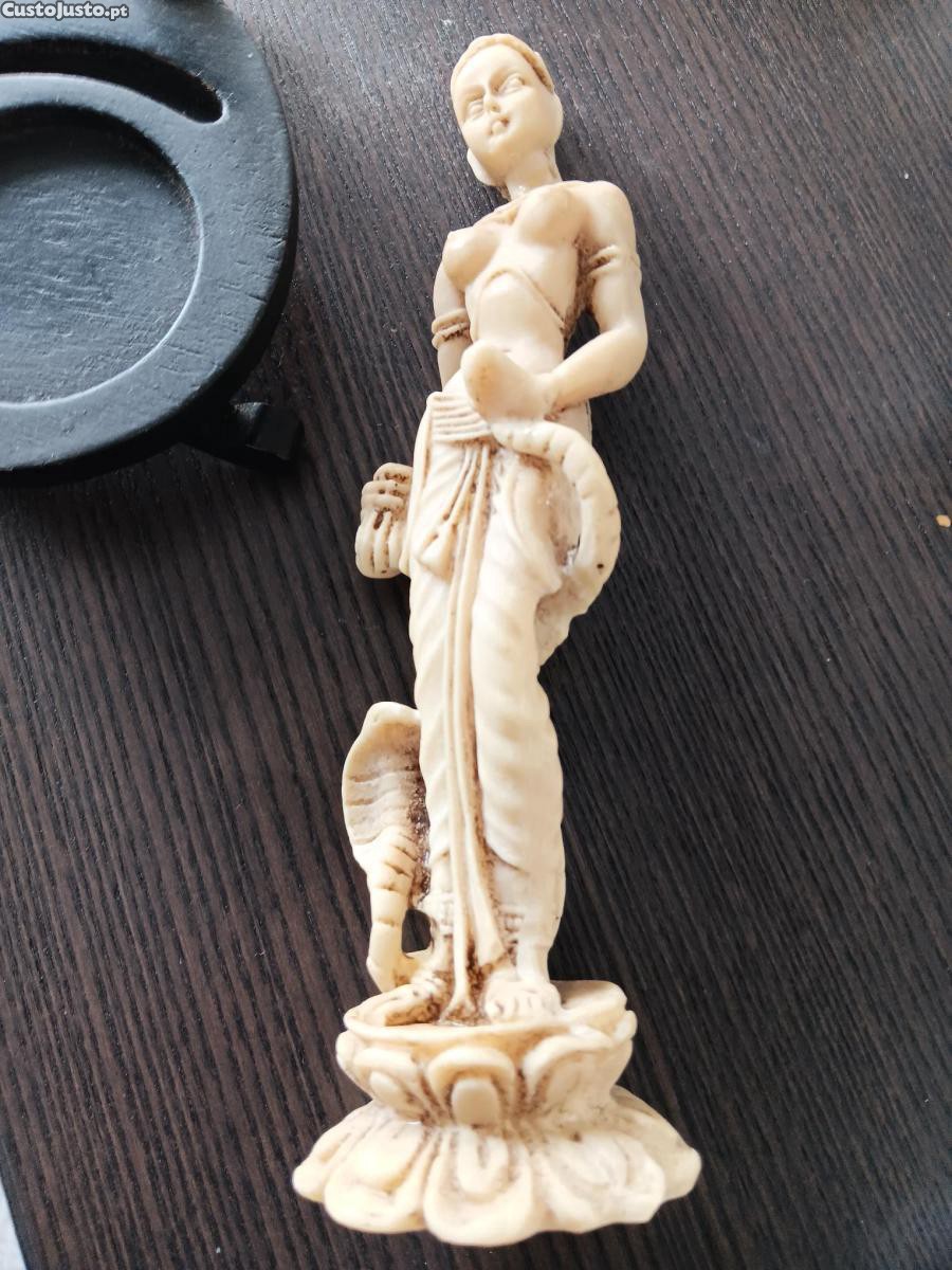 Estátua indiana, divindade hindu, deusa com serpente em resina anos 90, em óptimo estado com 20 cm. de altura por 5 cm de base.