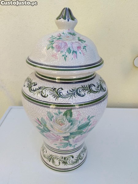 Pote lindissimo com tampa, mede 29 cm de altura e 14 cm de diâmetro na parte mais larga, comprovativo da sua origem gravado na base do pote, porcelana de qualidade, sem um único defeito. Vendo a EUR 20