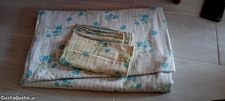 Preço: 10 €Lençóis com flores azul ideal para cama de 1.40x1.90