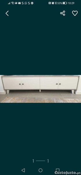 Móvel TV branco e cinza, com 4 portas e prateleiras. Medidas: 2,00x0,41x0,50.