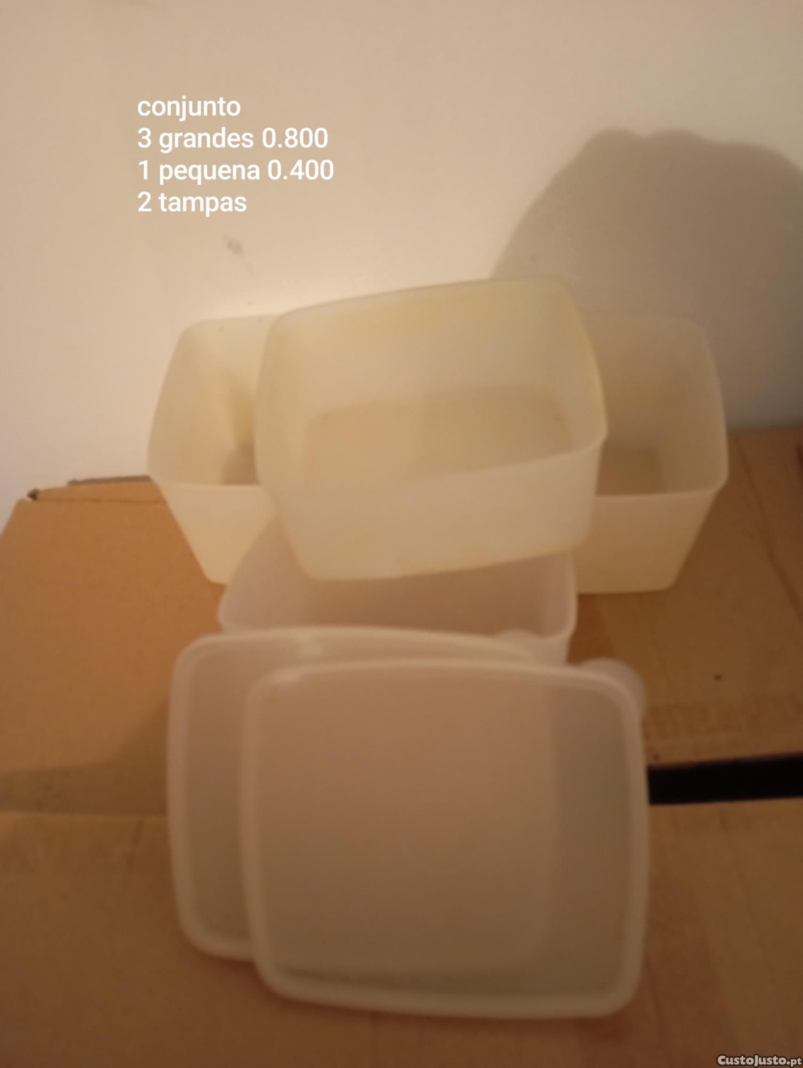 Preço: 15 €Pack caixas tupperware 3 grandes de 0.800ml 1 pequena de 0.400ml 2 tampas