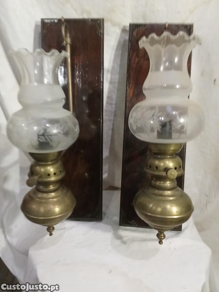 Par de Candeeiros antigos em latão, peças eletrificadas,