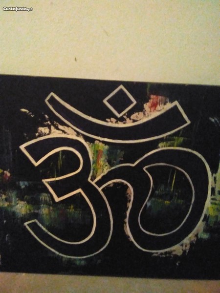Pintura óleo em tela, Simbolo Yoga, medidas 70X1,20 CM, O símbolo contém quatro partes, que são consideradas representativas de um aspecto da consciência humana, O Yoga vem de uma rica tradição cultural com raízes há milhares de anos. Como tal, ele emprega vários símbolos, metáforas e dispositivos que remontam suas origens às práticas mitológicas e religiosas da Índia antiga, é único, foi pintado por encomenda, está como as fotos demonstram,