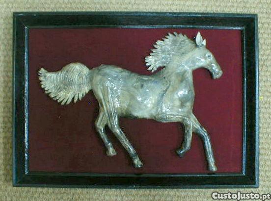 Quadro de madeira com cavalo de pedra 52x37cm