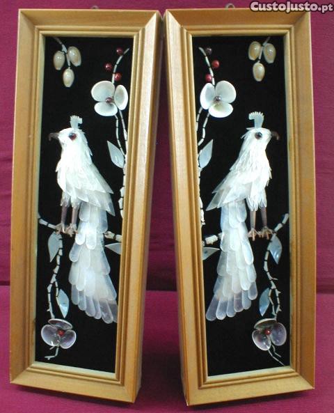 Preço: 7 €Quadro de madeira com pássaro madrepérola 27x10cm