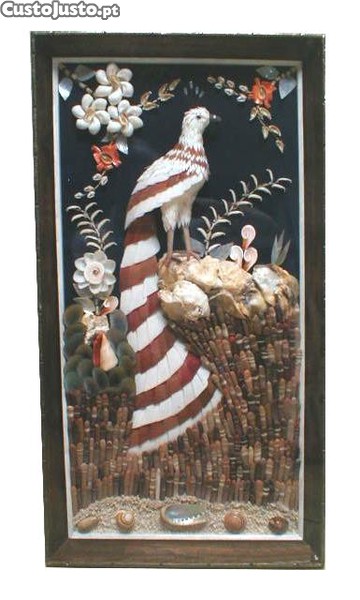 Preço: 65 €Quadro de madeira com pavão de concha 66x36cm
