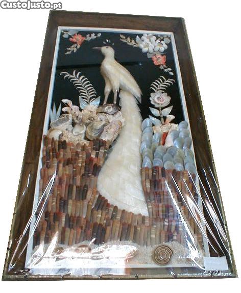 Preço: 65 €Quadro de madeira com pavão de madrepérola 66x36cm