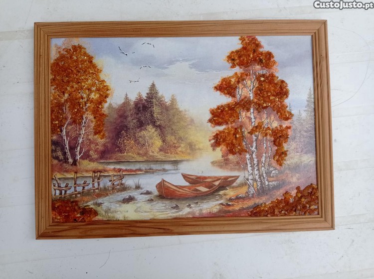 Quadro decorativo bastante original e raro, as folhas das árvores são feitas de pequenas pedrinhas coladas. Este quadro foi fabricado na Russia. Medidas, 32 cm por 23,5 cm. Vendo por EUR 20
