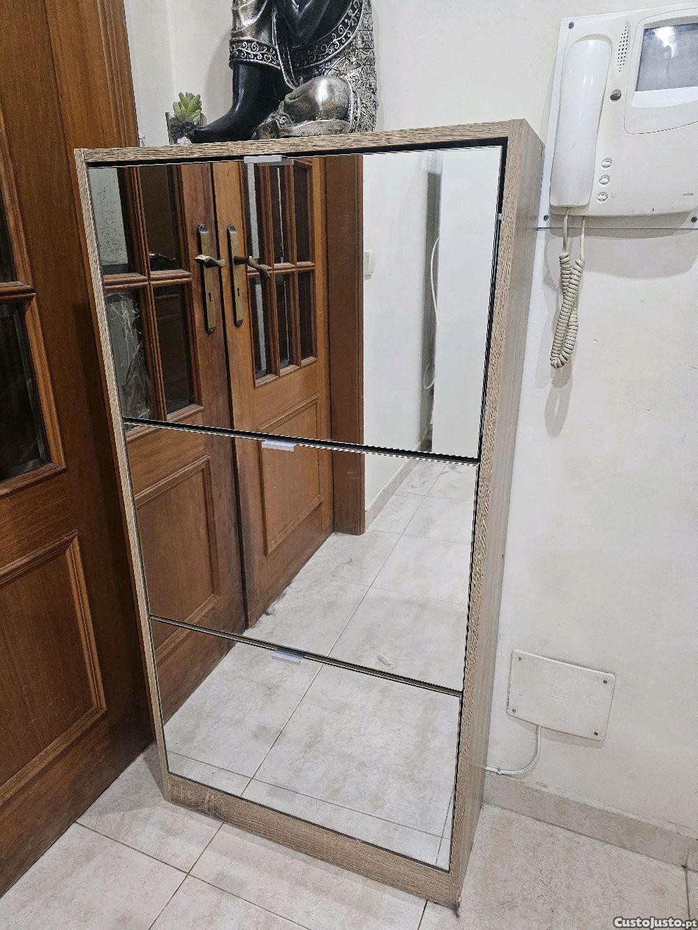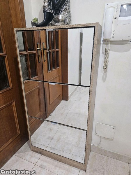 Sapateira de madeira clara praticamente nova. Com espelho na parte da frente e sem traseira.
