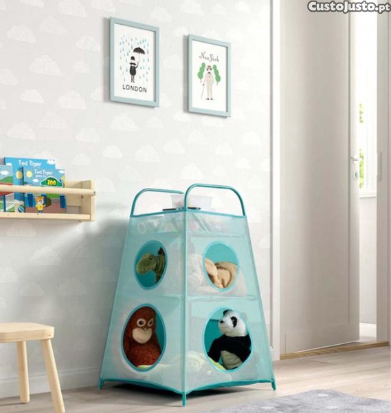 Uma solução de arrumação prática e simples onde pode guardar os brinquedos e peluches das crianças. Além disso, permite organizar tudo num instante, principalmente se todos ajudarem.