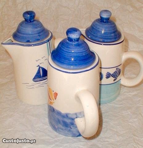 Cafeteira de cerâmica tema mar 18x23cm