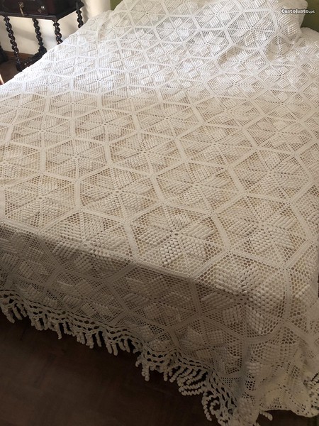 Linda colcha de casal feita, com muito amor , muito perfeita , executada em croché, franjas de rabo de Porco .