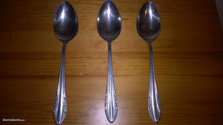 Conjunto de 3 garfos e colheres em aço inoxidável Anos 50. Comprados nos antigos armazéns Grandella, no Chiado em Lisboa