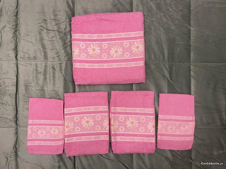 Preço: 20 €Conjunto de banho cor de rosa com detalhes de flores