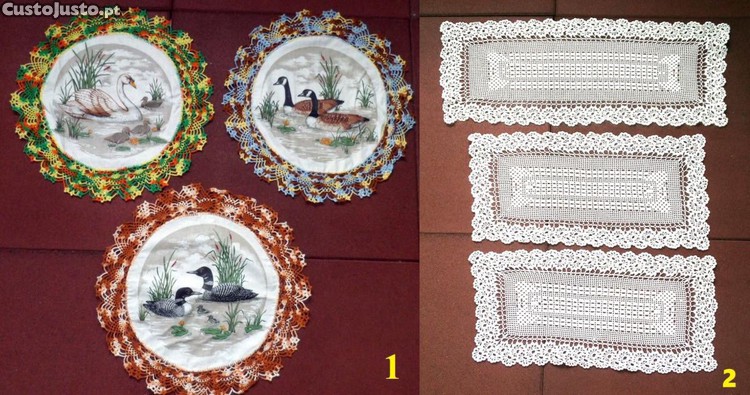 Preço: 90 €Jogos de naperons em renda bordados à mão, vários conjuntos