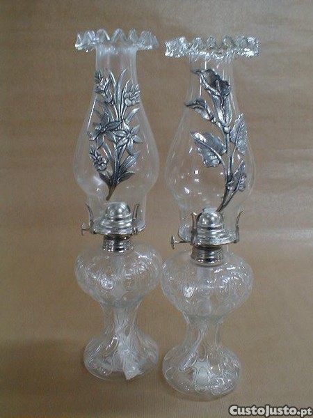 Preço: 45 €Lamparina de vidro com flores estanho 11x40cm