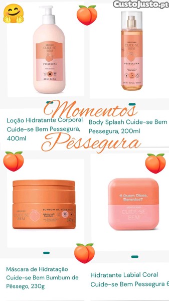 linha Cuide-se Bem hidratação corporal pêssegura, conjunto composto por:
