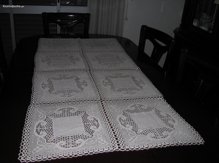 Naperon para centro de mesa, feito com quadrados de linho e rendados com fio de linho (motivo azulejo) com as seguinte medidas; 1,40X65cm.