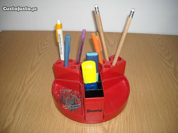 Organizador em PVC na cor vermelho, que permite arrumar diferentes tipos de artigos e organizar a sua secretária.