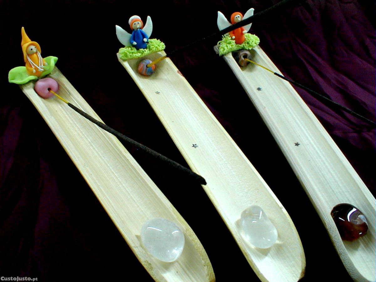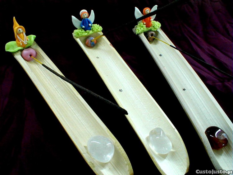 Preço: 4 €Porta-incenso em bambú com anjos e bruxas 24x4cm