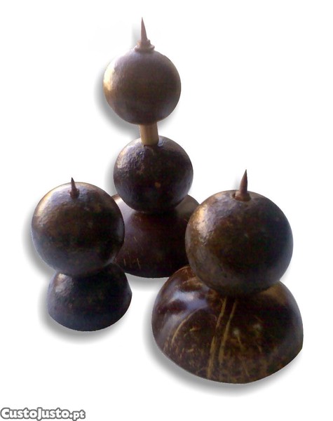 Preço: 5 €Suporte para vela em coco e maboque 22x9cm